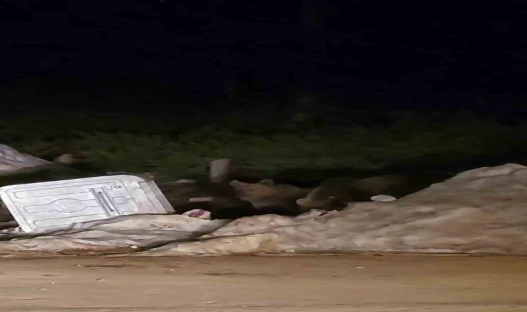 Uludağ’da aç kalan ayılar, çöp konteynerlerinde yemek ararken tatilciler durumu şaşırarak izledi.