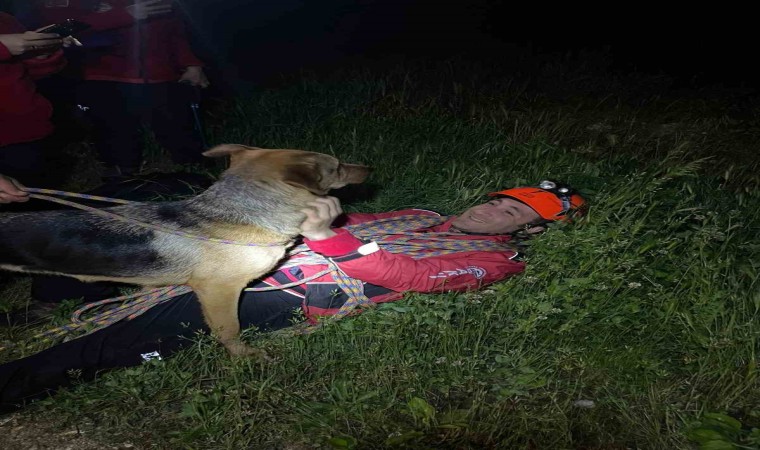 Uludağ’da kayanın üzerinde mahsur kalan köpek, arama kurtarma ekibi BAKUT tarafından kurtarıldı.