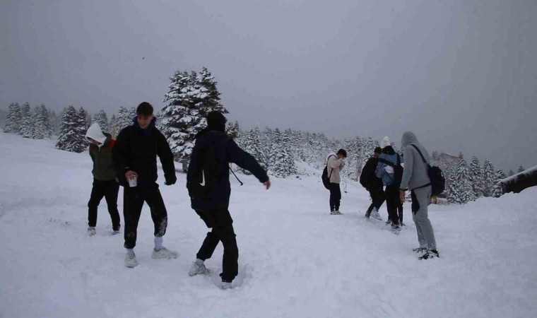 Günübirlik Uludağ’a gelen gençler ise Kasım ayında karın tadını çıkarttı.