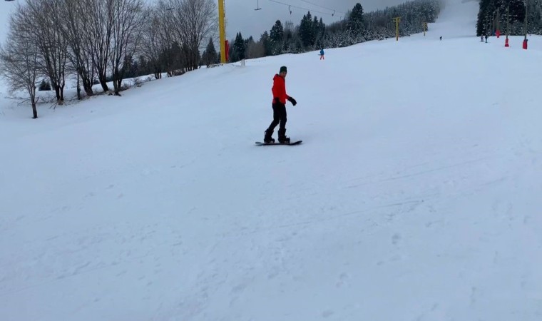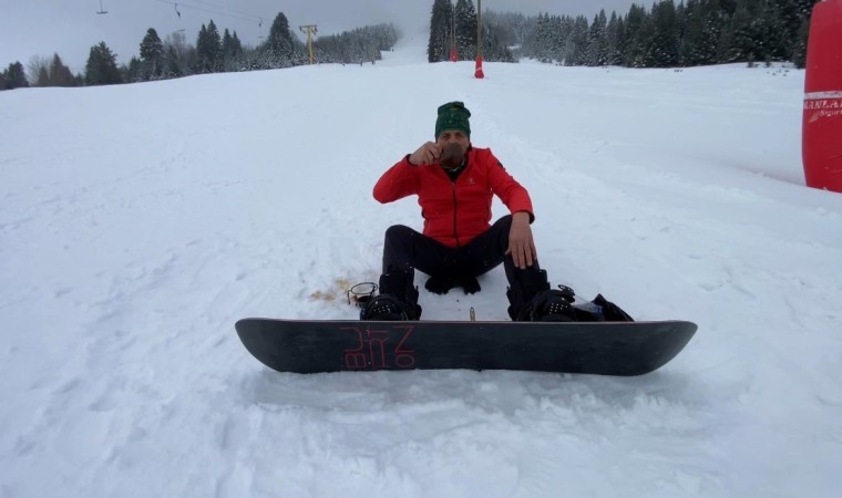 Ateştepe Uludağ’da snowboard ve kayak yapmanın ayrı bir keyif olduğunu belirtirken, herkesi sömestir tatilinde Uludağ’a davet etti.