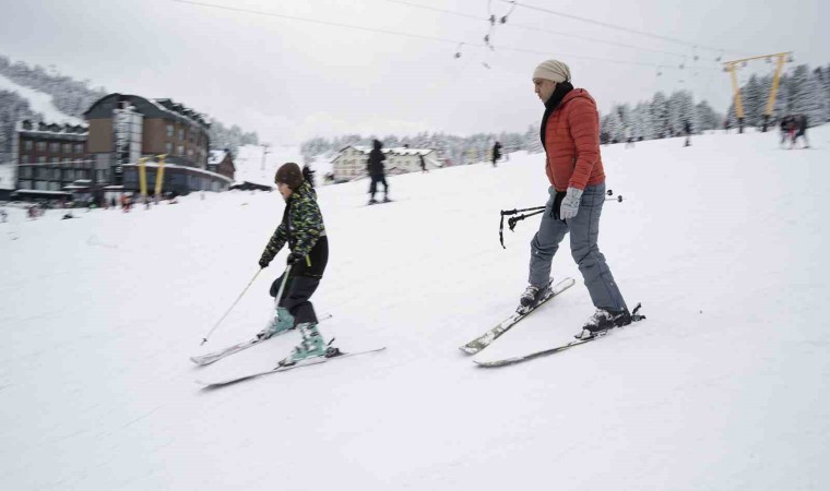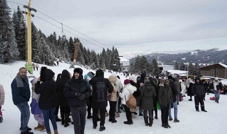 Bunun yanı sıra pistlerde bulunan telesiyeje binmek isteyen tatilciler de metrelerce kuyruk oluşturdu.