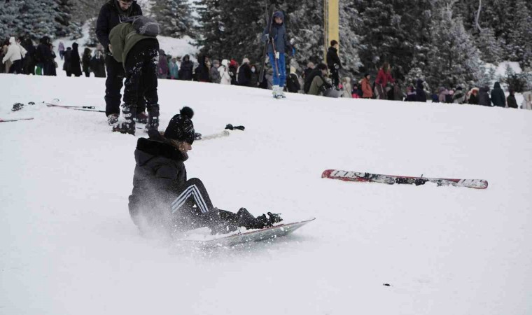 Öte yandan Uludağ’da ilk defa kayak yapanlar ufak kazalar yaparken o anlar objektiflere yansıdı.