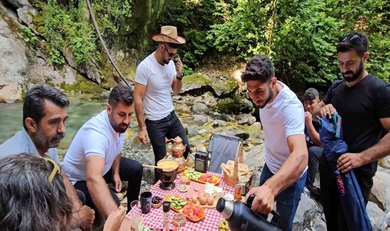Bazı vatandaşların da misafirliğe gelen akrabalarına, çıkabilecekleri şelalenin yanında kahvaltı sofrası kurması dikkat çekti.