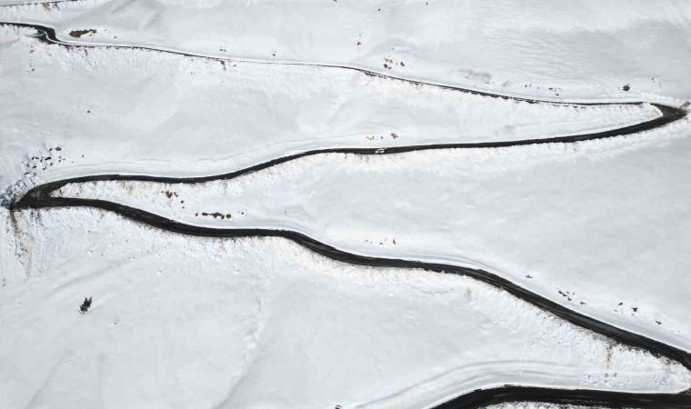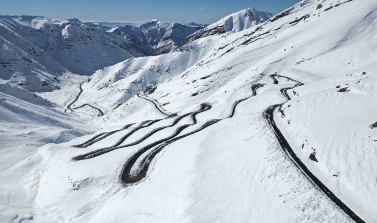 Şırnak’ın Uludere ilçesinde dron ile görüntülenen Uzungeçit virajlı yolu, kıvrılarak ilerleyen yılana benzetiliyor.