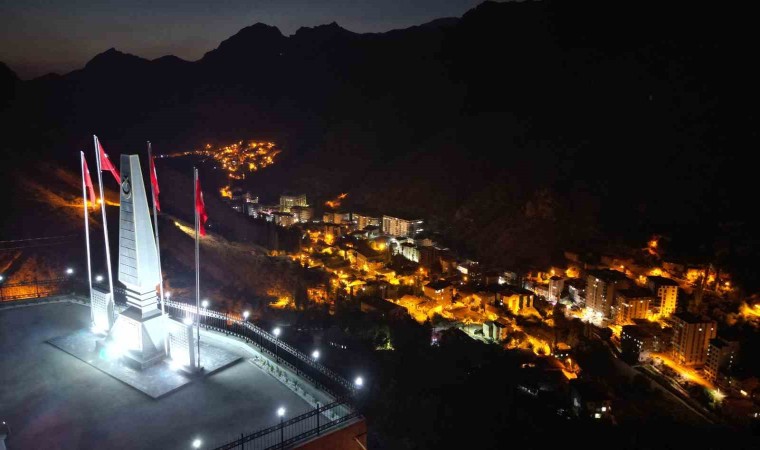 Uludere ilçesinde kaymakamlığın yaptırmış olduğu dev anıt görenleri duygulandırıyor. İlçeye hakim bir üs bölgesinde yapılan dev şehit anıtı hem gündüz hem de gece görüntülendi. İlçe Kaymakamı Bekir Yalçın’ın talimatıyla yaptırılan dev anıtta, farklı tarihlerde vatan toprakları için canlarını feda eden 154 Uludereli güvenlik görevlisinin ismi yazıldı.