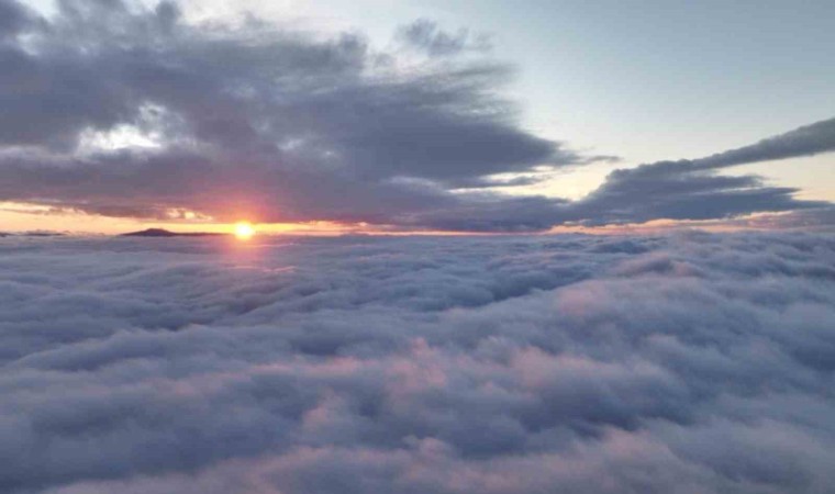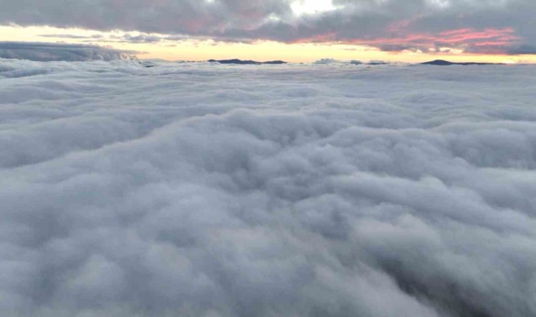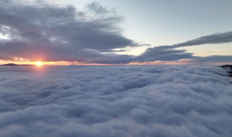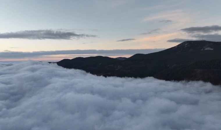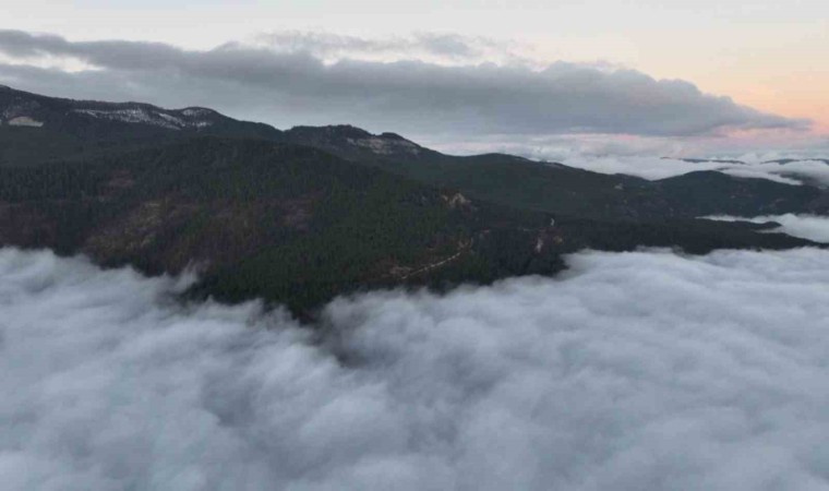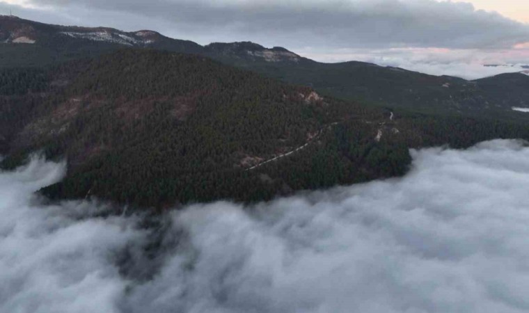 Balıkesir’in Sındırgı ilçesindeki Ulus Dağı’nda sis bulutu masalsı bir manzara oluşturdu.