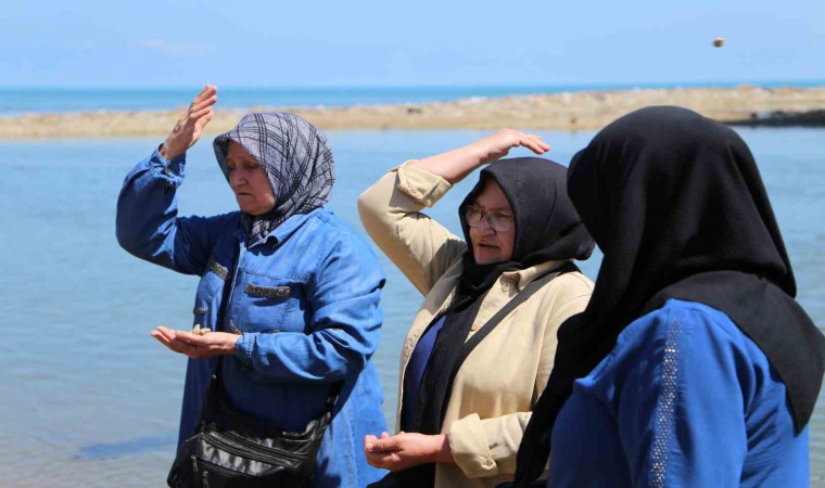 Aksu Deresi’nin denizle buluştuğu yerde düzenlenen festivalde vatandaşlar, bu yıl da yerden topladıkları yedi çift, bir tek taşı sırtları dereye dönük olacak şekilde dilek tutarak fırlattı.