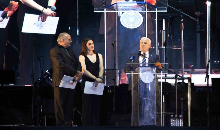 Başkan Mustafa Bozbey, festivalin genel sponsoru olan Atış Yapı adına Metin Atış’a ve gecenin sponsoru Uludağ Premium adına Ömer Kızıl’a teşekkür plaketi takdim etti.