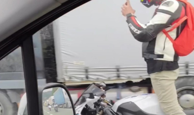 Karadeniz Sahil Yolu Arhavi-Hopa karayolu arasında kaydedilen tehlikeli yolculuğun görüntüsü dikkat çekti. Görüntülerde 3 şeritli karayolunun sağ şeridinde park halinde tırlar yer alırken, orta şeritte seyir halinde olan bir motosikletli grup görülüyor. En önde giden motosikletlinin ayakta ve direksiyon gidonunu bırakarak cep telefonu ile video çekmesi görenleri hayrete düşürdü.