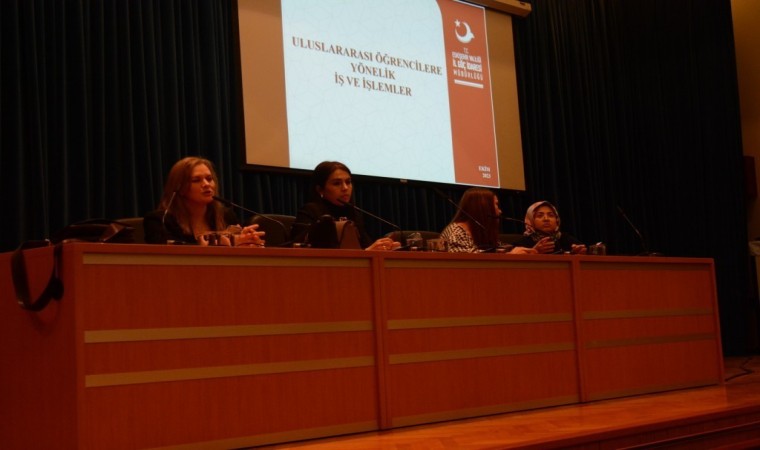 Anadolu Üniversitesi Uluslararası İlişkiler Birimi (UİB) ve Eskişehir Valiliği İl Göç İdaresi Müdürlüğü iş birliğiyle yeni başlayan uluslararası öğrenciler için ikamet izni bilgilendirme toplantısı gerçekleştirildi. Anadolu Üniversitesi Atatürk Kültür ve Sanat Merkezi Oda Tiyatrosu Salonu’nda düzenlenen toplantıya; Eskişehir Valiliği İl Göç İdaresi Müdürlüğü Göç Uzmanları Muhammet İzmir ve Nefise Korkmaz, Arapça Tercümanı Emel Karabiber, Farsça Tercümanı Sümeyye Tekim Pehlivan ve Ukraynaca Tercümanı Victoria Koyun katıldı.