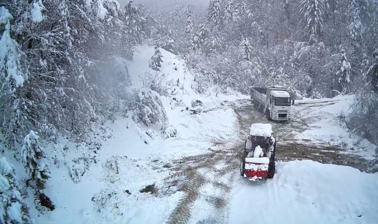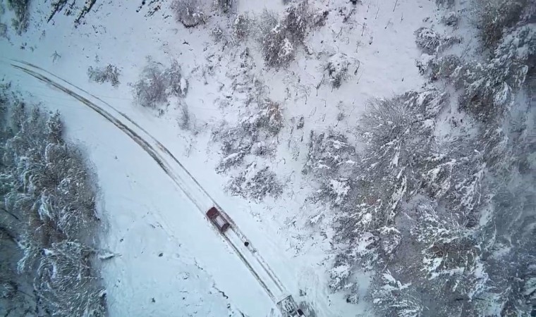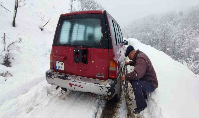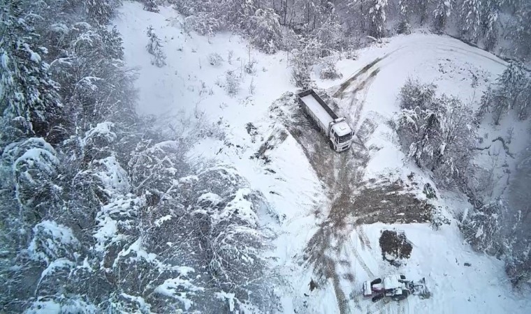 Bartın’ın Ulus ilçesinde kar kalınlığı 50 santimetreye ulaşırken, hazırlıksız yakalanan araçlar yolda kaldı.
