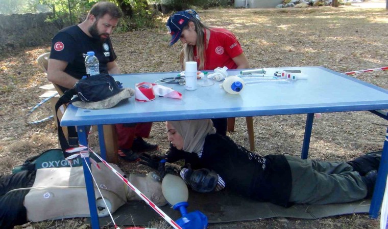 Muğla İl Sağlık Müdürlüğü Ulusal Medikal Kurtarma ekibine yeni katılan gönüllülerin eğitimi 35 derece sıcak altında komando eğitimlerini aratmadı. 5 gün süren eğitimlerde teorik bilgilerin yanında sürünme, dar alandan geçme, alçak ve yüksek atlama, dar alanda hasta taşıma ve dar alanda hastalara müdahale eğitimi verildi.