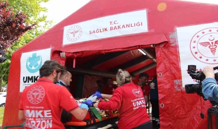 Trabzon’da Artvin, Giresun, Gümüşhane ve Rize’den gelen UMKE ekiplerinin katılımıyla tatbikat gerçekleştirildi. 100 personel ve 24 aracın katıldığı tatbikatta senaryo gereği selden etkilenen yaralılara müdahale edildi.