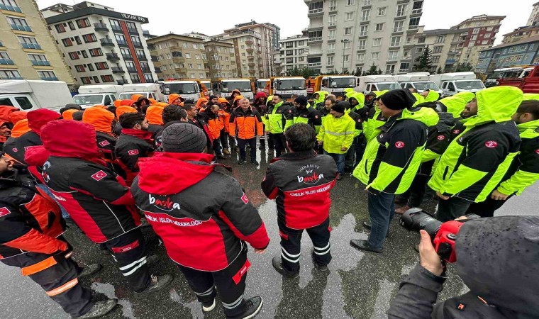 Ümraniye Belediyesi ekipleri, kar yağışı ve buzlanma riskine karşı ilçenin 15 ayrı noktasında 50 araçlık filosuyla kar nöbetinde.