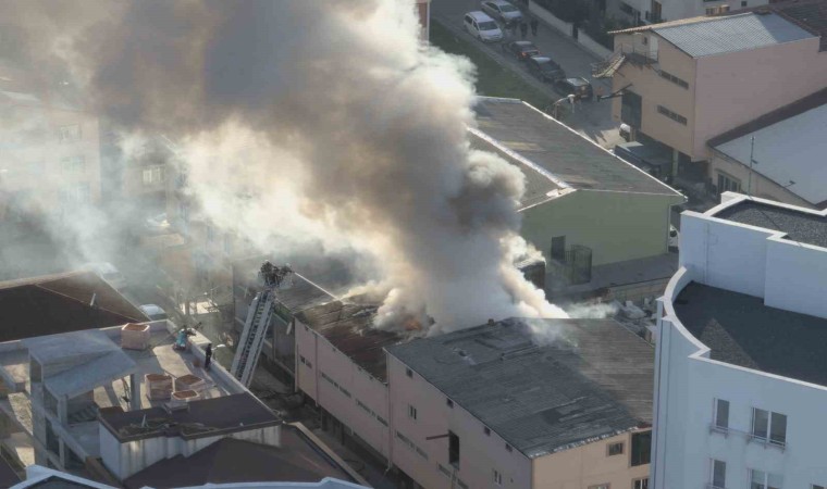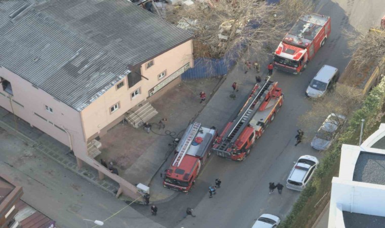 Ümraniye’de bir iş yerinin çatısı alev alev yandı. İtfaiye ekipleri tarafından söndürülen yangın, dron ile havadan görüntülendi.