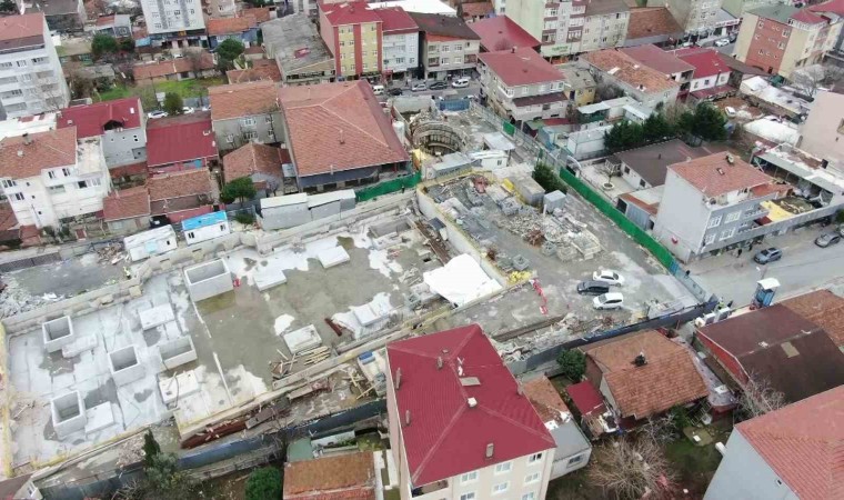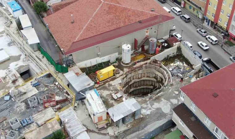 Öte yandan, çökmenin meydana geldiği metro şantiyesi havadan görüntülendi.