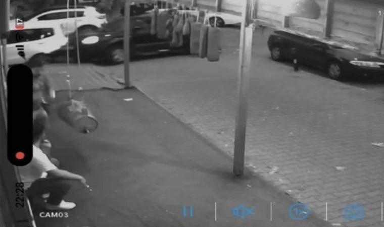 Görüntülerde işyerinin önünde birilerinin oturduğu, cipin önce park halindeki araca çarpıp işyerine daldığı, oturanların panikle yerinden kalkarak olay yerine gittiği görülüyor.