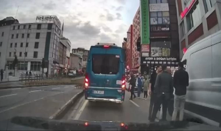 Sürücüler arasında yaşanan tartışma ve gerginlik başka bir aracın kamerasına yansıdı.