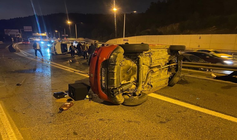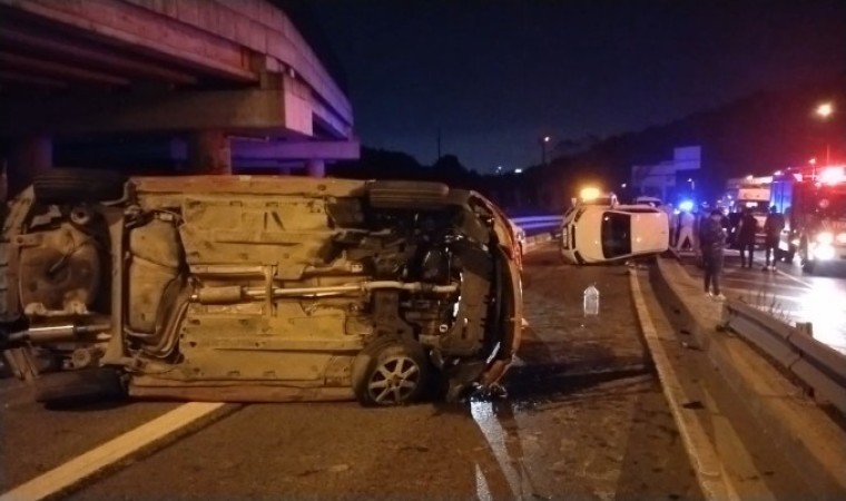 Ümraniye’de alkollü sürücü, aracının direksiyon hakimiyetini kaybederek sağ şeritten gelen araca çarptı. Çarpmanın etkisiyle iki araç da takla atarak durabildi.