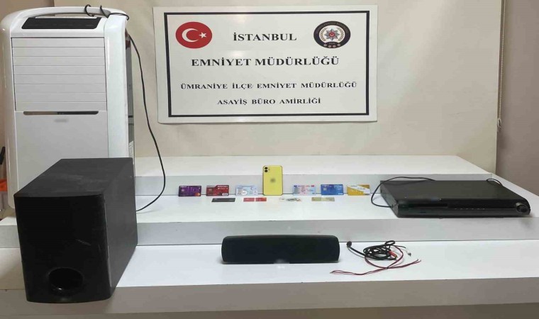 Ümraniye’de farklı adreslerde cep telefonu, DVD Player, hoparlör, taşınabilir klima gibi eşyaları çalan şüpheli polis tarafından yakalandı. Hırsızlık anları güvenlik kamerasına yansıdı.