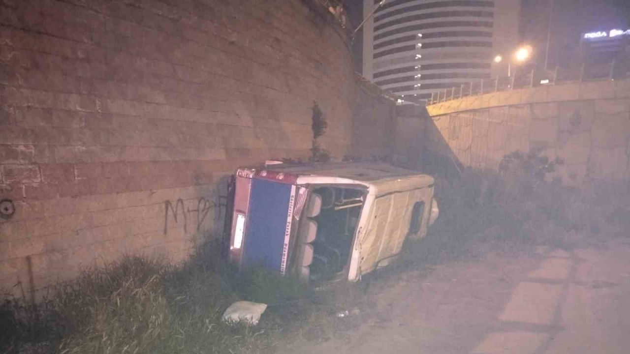 Ümraniye’de minibüs şarampole yuvarlandı: 2 yaralı