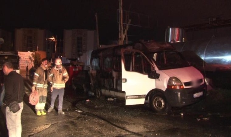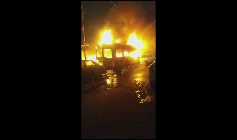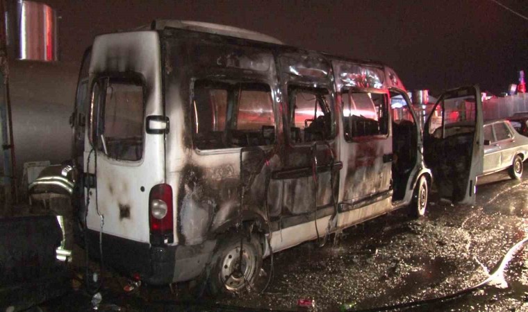 Ümraniye’de alkol alan kimliği belirsiz kişiler park halindeki servis aracını ateşe verdi. Kısa sürede alevler içinde kalan araç kullanılamaz hale geldi.