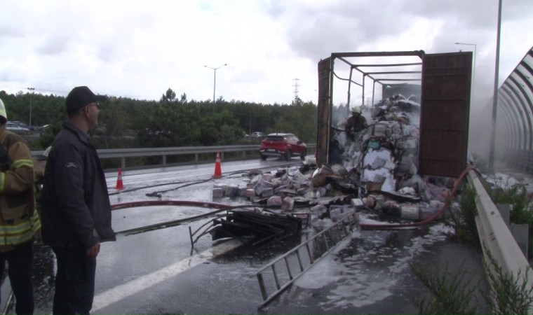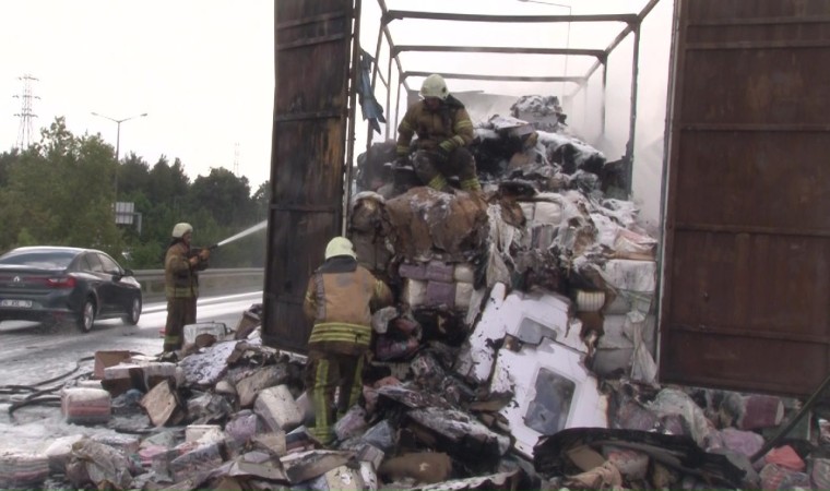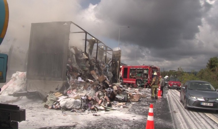 Yangın, İstanbul’un Ümraniye ilçesi Çevre Yolu Ankara istikametinde saat 12.45 sıralarında yaşandı. İddiaya göre, Yusuf K. hakimiyetindeki 99 ADY 02 Kazakistan plakalı tekstil malzemeleri yüklü tırın dorsesi seyir halindeyken yanmaya başladı. Alevler bir anda büyüyerek tüm dorseyi sardı. Yangını fark eden tır şoförü tırın ön kısmı ile dorseyi ayırdı. Seyir halindeki diğer sürücüler tarafından itfaiye ekiplerine haber verildi. Durumun bildirilmesi üzerine olay yerine çok sayıda itfaiye ve polis ekipleri sevk edildi. Olay yerine gelen itfaiye ekipleri alev topuna dönen tır dorsesini yaklaşık 2 saatlik çalışmanın ardından söndürmeyi başardı. Yangında ölen veya yaralanan olmazken, tırın dorsesi ve içinde taşınan tekstil malzemeleri kullanılmaz hale geldi. Polis ekipleri trafiği kontrollü şekilde ilerletirken, kazayla ilgili de inceleme başlattı.