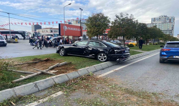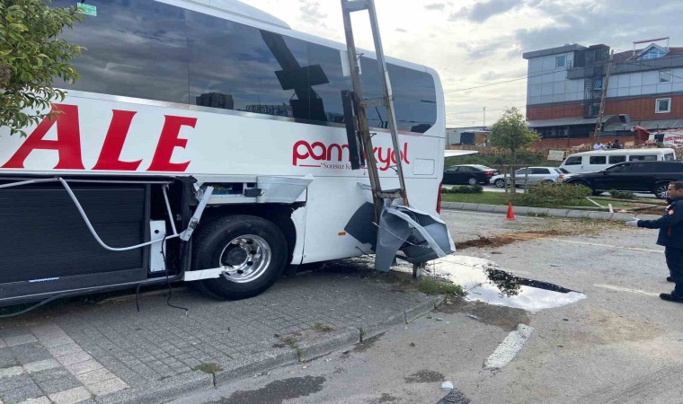 Ümraniye’de otogardan çıkan şehirlerarası yolcu otobüsü cadde üzerindeki otomobile ve yayaya çarptı. Freni tutmayan otobüs otomobili refüje fırlatarak karşı yola geçti. Yaşanılan kazada otomobil şoförü ve yaya yaralandı.