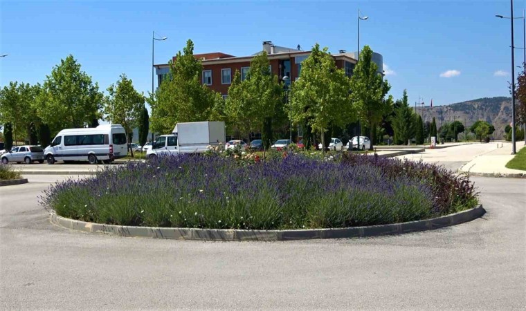 Çankırı Karatekin Üniversitesi’nde refüjlerde oluşturulan lavanta bahçeleri ile kampüs mor ve mavimsi renklerle süslenip, lavantanın eşsiz güzellik ve buram buram kokusuyla çevrelendi.