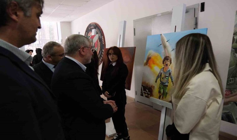 Filistin’de yaşananlara sanat dünyasının duyarsız olmaması gerektiğinin altını çizen Başkan Aşgın, “Şu anda dünyadaki bütün sanatçılar, vicdanlı sanatçılar kendi sanatlarının ürünü olarak bu konuya dikkat çekiyorlar. Dünyadaki bir çok sinema yıldızından tiyatrocuları, ressamlardan fotoğraf sanatçılarına bir çok sanat kolundaki vicdanlı sanatçılar yaşananlara duyarsız kalmıyor. Çığlıklarını atıyorlar. Seslerini yükseltiyorlar. O anlamda böylesine güzel bir çalışmayı geleceğimizin sanatçıları ve ressamları olarak gördüğümüz Güzel Sanatlar Fakültemizin öğrencileri öğretmenleriyle birlikte yapmışlar. Bundan onur ve şeref duyarız. Bu sadece burada kalmamalı. Çorum Belediyesi olarak bu sergimizi Güzel Sanatlar Galerimizde de açacağız” şeklinde konuştu.