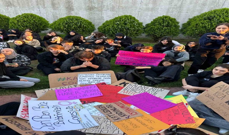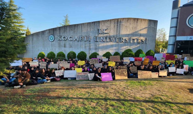 Kocaeli’de üniversite öğrencileri, kadın cinayetlerine tepki göstermek amacıyla siyah giyinerek oturma eylemi yaptı.