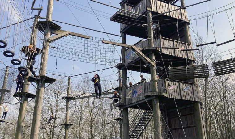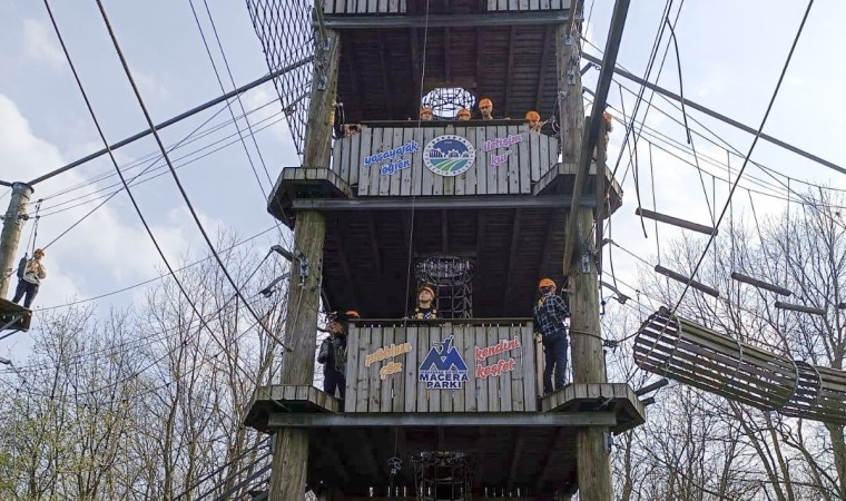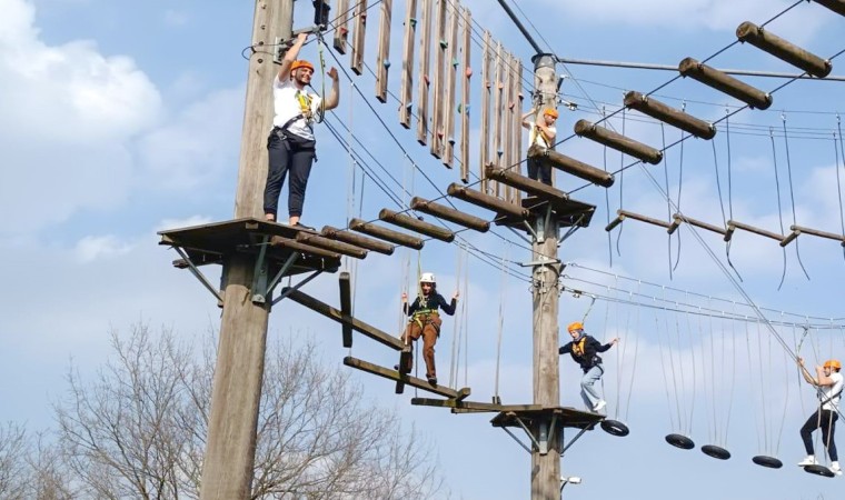 SUBÜ öğrencileri Macera Park’ta düzenlenen etkinlikte yükseklik korkularıyla yüzleşirken, sorun çözmeye yönelik yeteneklerini de test ettiler.