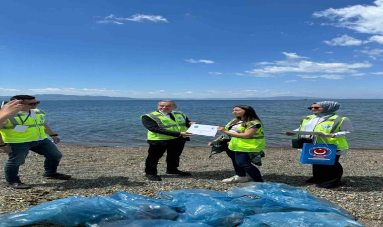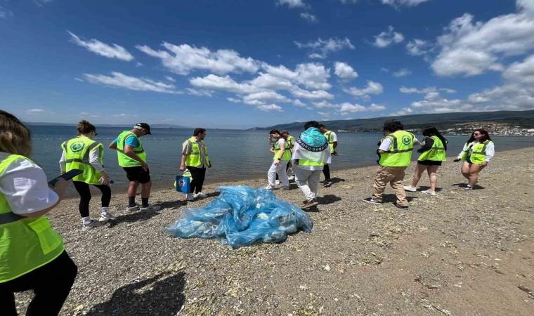 Bursa Uludağ Üniversitesi (BUÜ) öğrencileri, çevre kirliliğine dikkat çekmek ve önlem alınmasını sağlamak amacıyla Küçük Kumla sahilinde bulunan katı atıkları topladı.