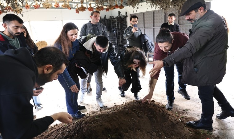 Bursa Uludağ Üniversitesi Ziraat Fakültesi Toprak Bilimi ve Bitki Besleme Bölümü 3. sınıf öğrencileri, Nilüfer Belediyesi’nin Ürünlü Mahallesi’ndeki Küçük Ölçekli Kent Bostanları’nda bulunan Kompost Ünitesi’nde eğitim aldılar. Ziraat Mühendisi Dr. Saliha Dorak ile Ziraat Mühendisi Mehtap Köksal kompost üretimi ve kullanım şekli hakkında öğrencileri bilgilendirdi, sorularını yanıtladı. Nilüfer Belediyesi’nin “Nilüfer’de Çöpe Atmıyoruz, Toprağa Kazandırıyoruz” projesi kapsamında hibe alarak hayata geçirdiği Kompost Ünitesi’ni inceleyen öğrenciler kompost üretimi hakkında gözlemde bulunma fırsatı yakaladı. Bitki bakımı ve yetiştiriciliği hakkında da bilgi alan öğrenciler, Tohum Kütüphanesi’ndeki ürünleri inceleme fırsatı buldu. Merak ettikleri hakkında sorularına yanıt alan öğrenciler, uygulamalı eğitimle çalışmaları yerinde gözlemleme şansı yakaladı.