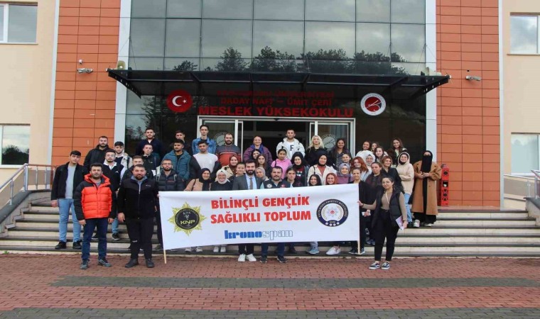 Kastamonu Emniyet Müdürlüğü Narkotik Suçlarla Mücadele Şube Müdürlüğünün koordinesinde, Kronospan Orman Ürünleri A.Ş. destekleriyle hayata geçirilen “Bilinçli Gençlik Sağlıklı Toplum” projesi çerçevesinde Kastamonu Üniversitesi İnsan ve Toplum Bilimleri Fakültesi ile İhsangazi Meslek Yüksekokulu, Bozkurt Meslek Yüksekokulu ve Daday Nafi ve Ümit Çeri Meslek Yüksekokulu’nda eğitim gören üniversite öğrencilerine madde bağımlılığının zararları ve korunma yolları ile ilgili bilgilendirmeler yapıldı.