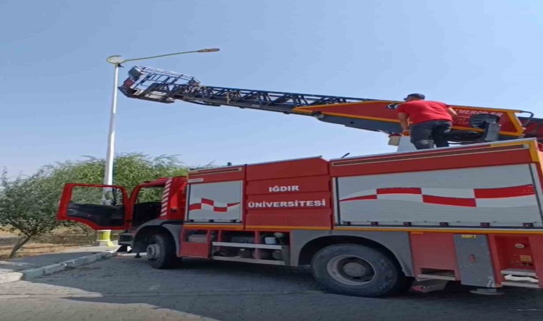 Iğdır Üniversitesi Şehit Bülent Yurtseven Kampüsü’nde bir karganın elektrik direğine takılı kaldığı ihbarının araç işletme amirliğine iletilmesi ile üniversite personeli hemen harekete geçti. Üniversiteye ait itfaiye aracını alan üniversite personeli Kıvanç Şilepe karganın takılı olduğu elektrik direğinin yanına gitti. Burada itfaiye aracını kuran Şilepe, eldivenlerini takarak itfaiye aracı ile yukarı çıktı. Kargayı sıkıştığı yerden kurtaran Şilepe, kargayı yeniden doğaya saldı. Kargayı güvenli bir şekilde kurtarmayı başardığını belirten Kıvanç Şilepe, "Araç işletme amirliğimize yapılan ihbar sonrası harekete geçtik. Kargayı sıkıştığı elektrik direğinden alarak özgürlüğüne kavuşturduk. Iğdır Üniversitesi olarak hayvanları seviyoruz. Bu sıcak günlerde evimizin önüne bir kap su bırakalım" dedi.