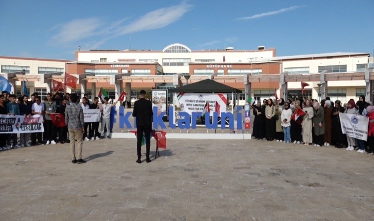 Kırklareli’nde üniversite öğrencileri, Filistin’e destek olmak için basın açıklaması yaptı.