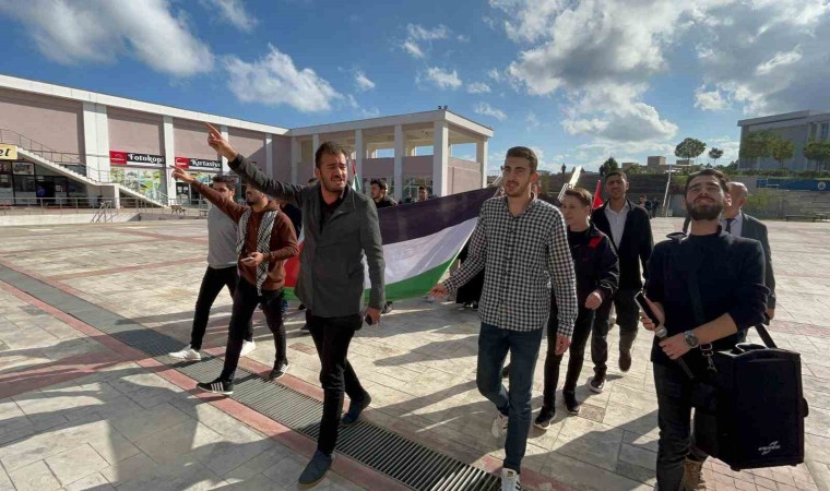 Sinop’ta, Üniversiteli Aktif Gençlik Öğrenci Topluluğu, Gazze’de süren soykırıma tepki göstermek için kampüs içinde yürüyüş düzenledi.