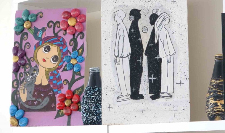 Mersin Erdemli’de yurtta açılan 26 kursa katılan 480 öğrenci deniz kenarından topladıkları taştan oduna kadar bir çok geri dönüşüm eşyasıyla ürettikleri ürünleri sergiledi.