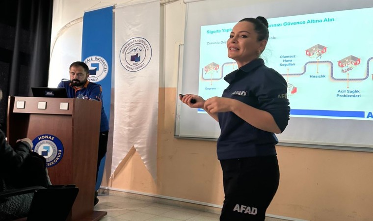 Denizli İl Afet ve Acil Durum Müdürlüğü eğitimcileri tarafından Pamukkale Üniversitesi (PAÜ) Honaz Meslek Yüksekokulu (MYO) öğrencilerine muhtemel afet durumlarında alınacak önlemler hakkında “Afet Farkındalık Eğitimi” verildi.
