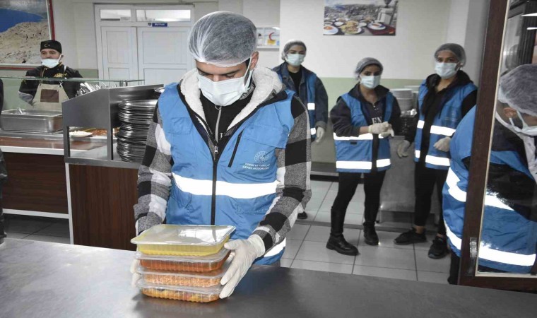 Bitlis’te devlet yurtlarında kalan gönüllü üniversite öğrencileri daha önceden belirlenen ihtiyaç sahibi ailelere sıcak yemek dağıtıyor.