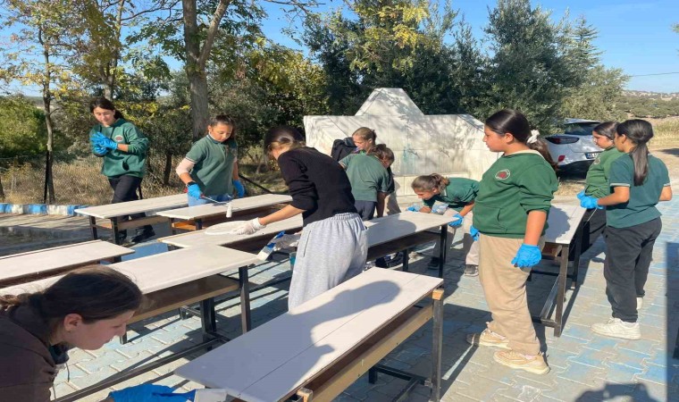 Manisa’da bir köy okulunun masalarını zımparalayarak boyayan üniversite öğrencileri, katkıda bulundukları okul idaresinin ve öğrencileri mutlu etti. Çalışmaya ortaokul öğrencileri de destek verdi.