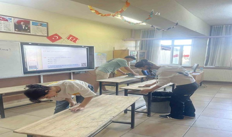 Masalarının yenilenmesine sevinen ortaokul öğrencileri, projeye katlı sağlayan üniversite öğrencilerine teşekkür etti.