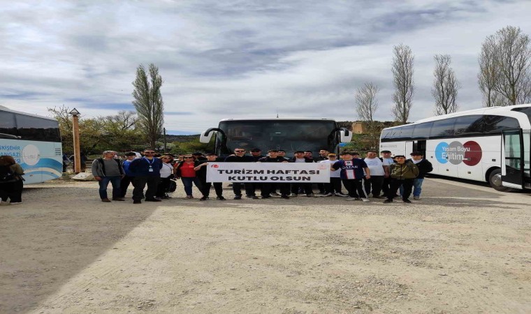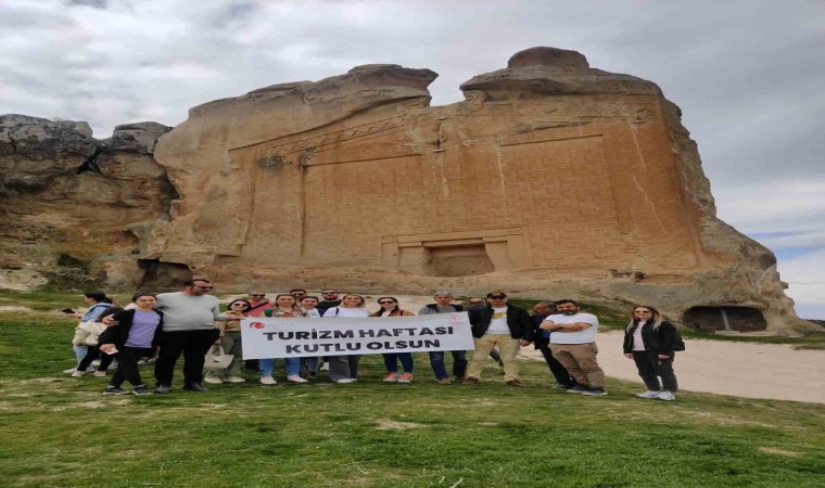 Eskişehir Valiliği ile Eskişehir İl Kültür ve Turizm Müdürlüğü tarafından, toplumda turizm bilincini geliştirmek amacıyla her yıl 15-22 Nisan tarihleri arasında kutlanan Turizm Haftası nedeniyle düzenlenen programlar devam ediyor. Bu çerçevede, dün bando eşliğinde kortej yürüyüşü ve açılış programının gerçekleştirilmesinin ardından bugün üniversiteli ve liseli öğrencilerin katılımıyla ’Yazılıkaya Doğa ve Kültür Yürüyüşü’ etkinliği yapıldı. Saat 09.00’da Valilik Meydanı’ndan Eskişehir’e 80 kilometre uzaklıkta bulunan Han İlçesi’ne hareket eden katılımcılar Turizm Haftası’nı orada kutlarlarken, aynı zamanda Yazılıkaya’da keşfettikleri tarihi güzellikleri fotoğrafladılar.