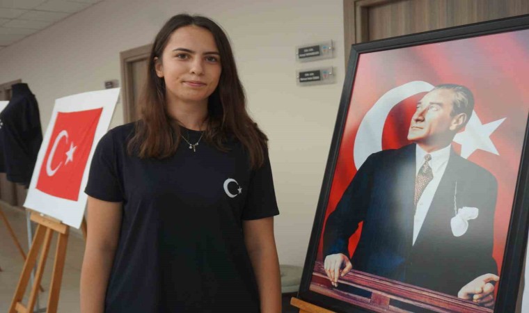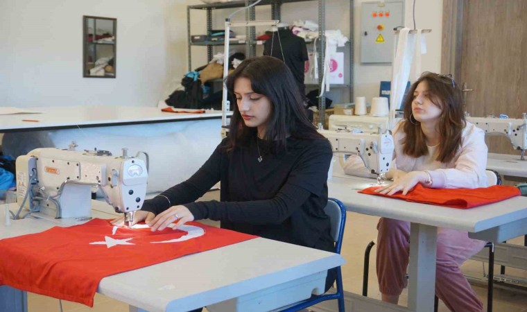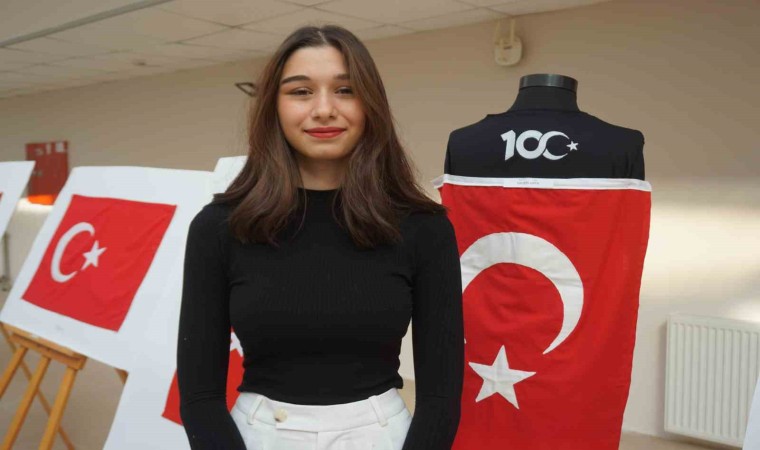 Trakya Üniversitesi Teknik Bilimler Meslek Yüksekokulu Giyim Üretim Bölümü öğrencisi Sinem Dağlar da öğretmenlerinin eşliğinde Cumhuriyet’in 100. yılına özel Türk bayrağı dikimi yaptıklarını, gururlu ve mutlu olduklarını dile getirdi.