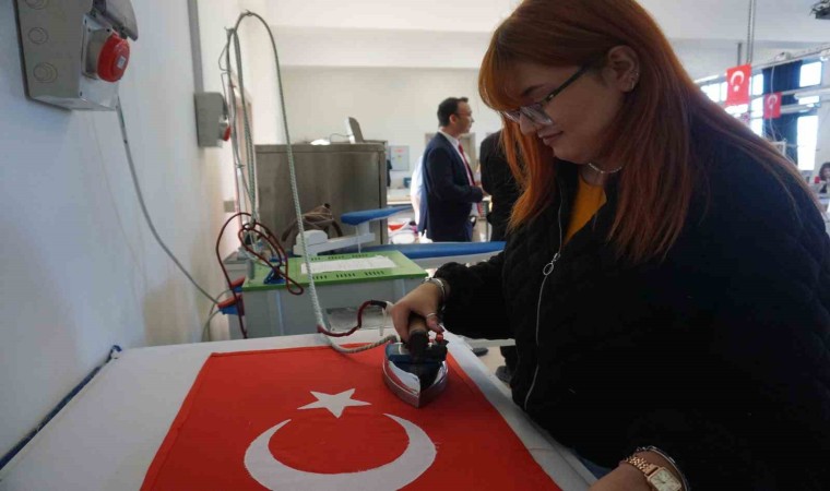 Öğrencilere 100’üncü yıl coşkusunu yaşatmak istediklerini belirten Becenen, "Biz de bunun hakkını vermek bu coşkuyu her alanda göstermek istiyoruz. Özellikle gençlerimizin mesleğiyle, hayatıyla Cumhuriyet’imizin, vatanımızın ve değerlerimizin iççice yaşamasını istiyoruz. 100’üncü yıla özgü 100 bayrak ve 100 tişört dikimi yapıldı. Bunlar nakış makineleriyle işlendi. O duygu, o coşku ürünlerin her birine geçti" dedi.