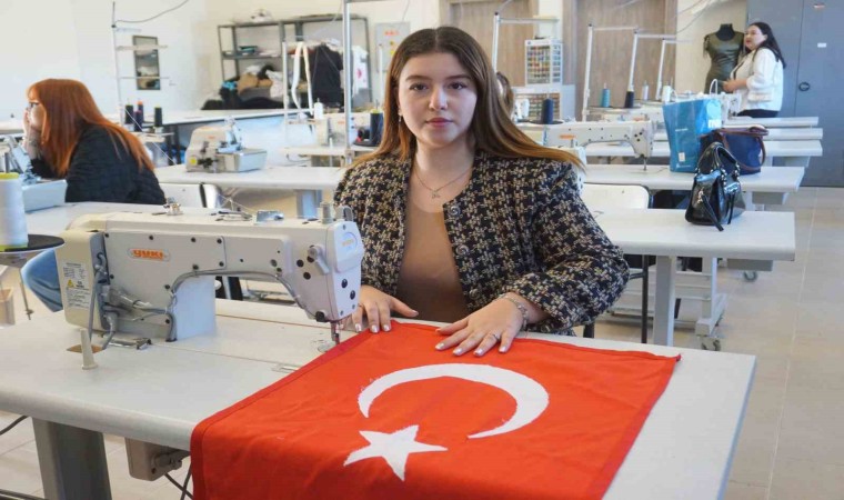 Trakya Üniversitesi Teknik Bilimler Meslek Yüksekokulu Giyim Üretim Teknolojisi Bölümü Öğrencisi Kardelen Çiftçi, okulda dikiş kısmını çok güzel öğrendiklerini ve 100. yıla özel 100. bayrakla bu şekilde bir projede yer almanın mutluluk verici olduğunu söyledi.