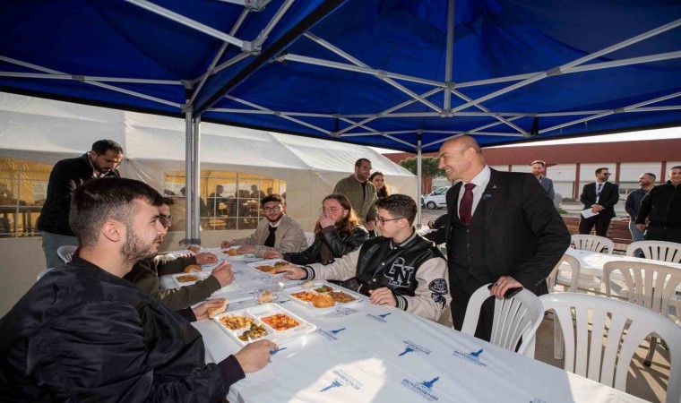 İzmir Büyükşehir Belediye Başkanı Tunç Soyer, İzmir Kâtip Çelebi Üniversitesi’nde gençlerin akşam yemeğine konuk oldu. İzmir Büyükşehir Belediyesi tarafından üniversite öğrencilerine nefes aldıran ücretsiz yemek dağıtımına katılan Başkan Tunç Soyer, gençlerle sohbet ederek uygulamadan memnuniyetlerini sordu. Eğitimden siyasete gençlerin sorularını cevaplayan Başkan Soyer, öğrencilerle hatıra fotoğrafı da çekildi.