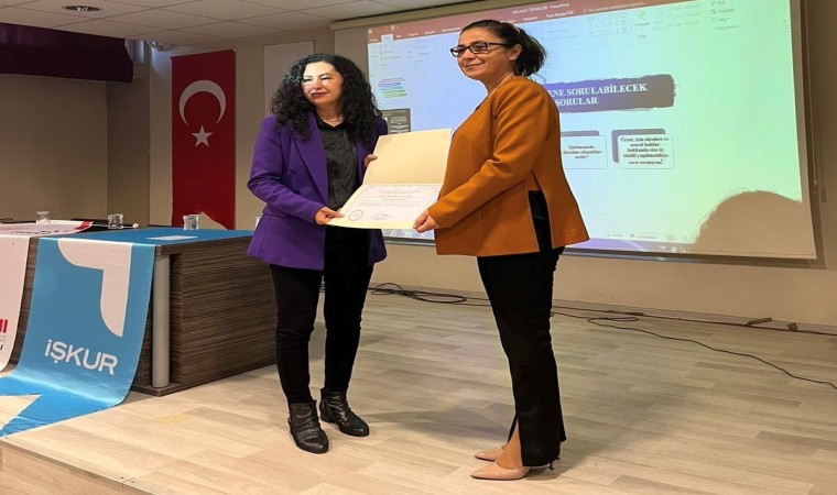 Eğitim sonunda İş Kulübü Lideri Hilal Özkan’a plaket takdim edildi.