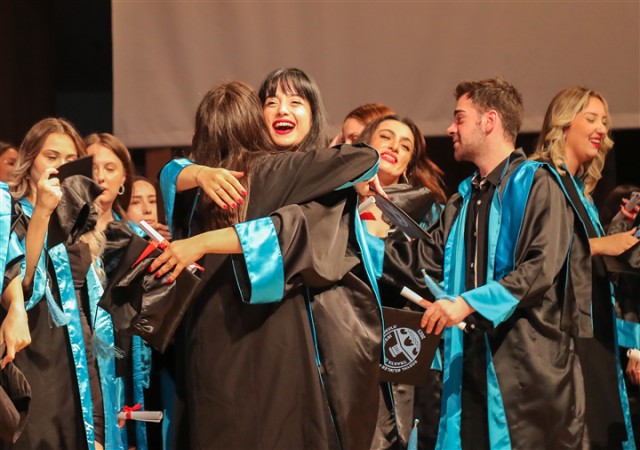 Mezuniyet töreni, dereceye giren öğrencilere plaketlerinin ve mezun olan öğrencilere diplomalarının verilmesiyle sona erdi. Mezun öğrenciler, keplerini havaya atarak mezuniyetlerini coşkuyla kutladılar.